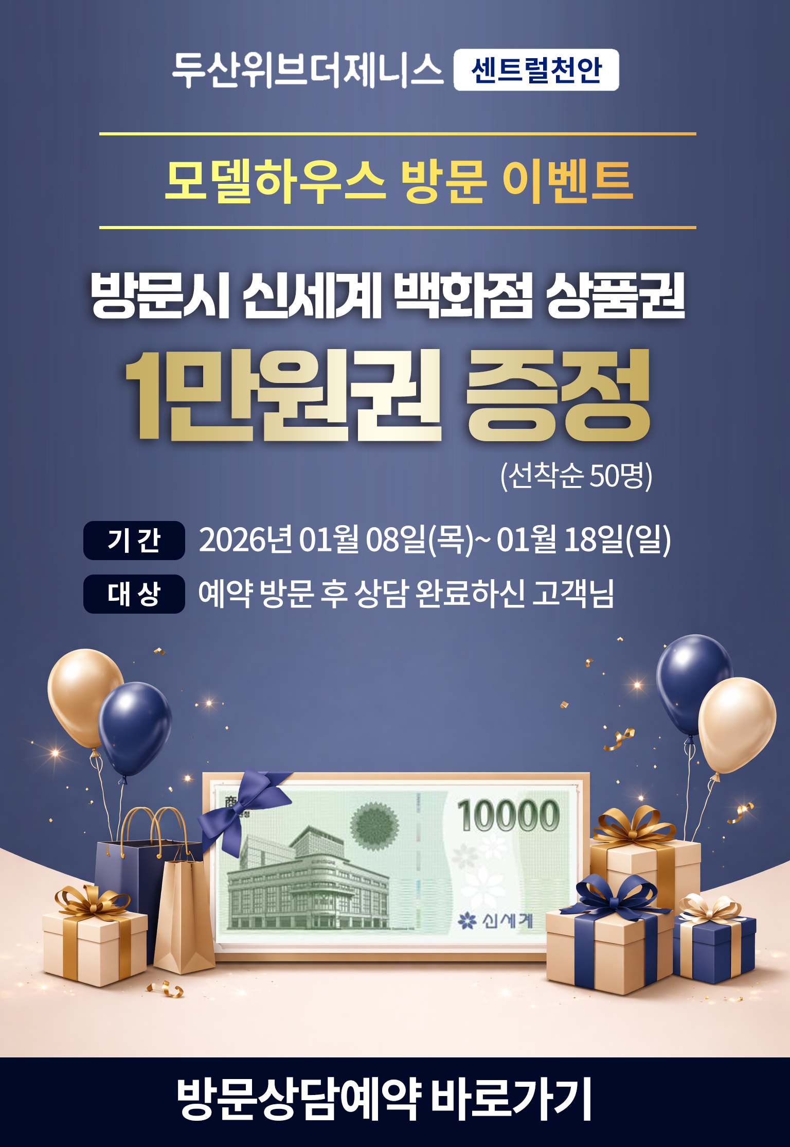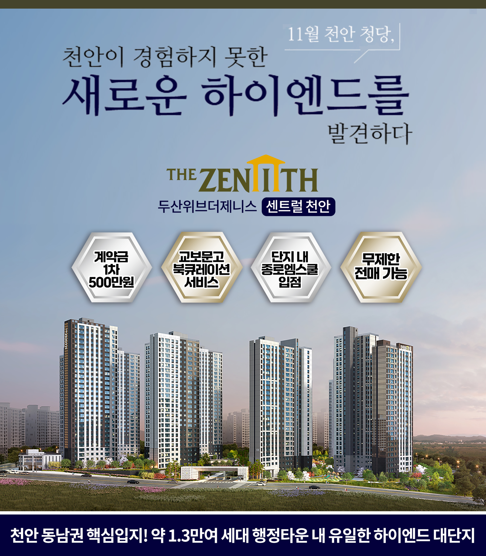 두산위브더제니스 센트럴 천안 방문예약 고객의 개인정보를 수집합니다. 수집한 개인정보는 방문예약 이외의 목적으로는 사용하지 않으며, 모집 기간 완료 후 즉시 파기합니다. 개인정보의 수집 및 이용에 대한 동의를 거부할 수 있으며, 이 경우 방문예약 접수가 어려울 수 있습니다.
